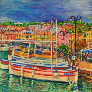 Cieli tempestosi sopra Cassis, Francia, Acrilico su tela, 30x30cm Stormy Skies Over Cassis, Southern France. Acrylic on Canvas, 30x30cm