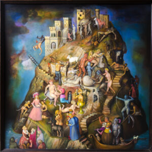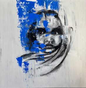 Olio all’acqua su tela, 110x110cm L’opera “Sono qui” fa parte di un flusso continuo di ricerca artistica che parte dalla