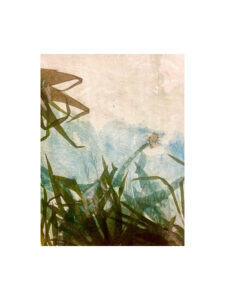 Pigmento, vernice e carta su tessuto intelato, cm 30×40, 2025