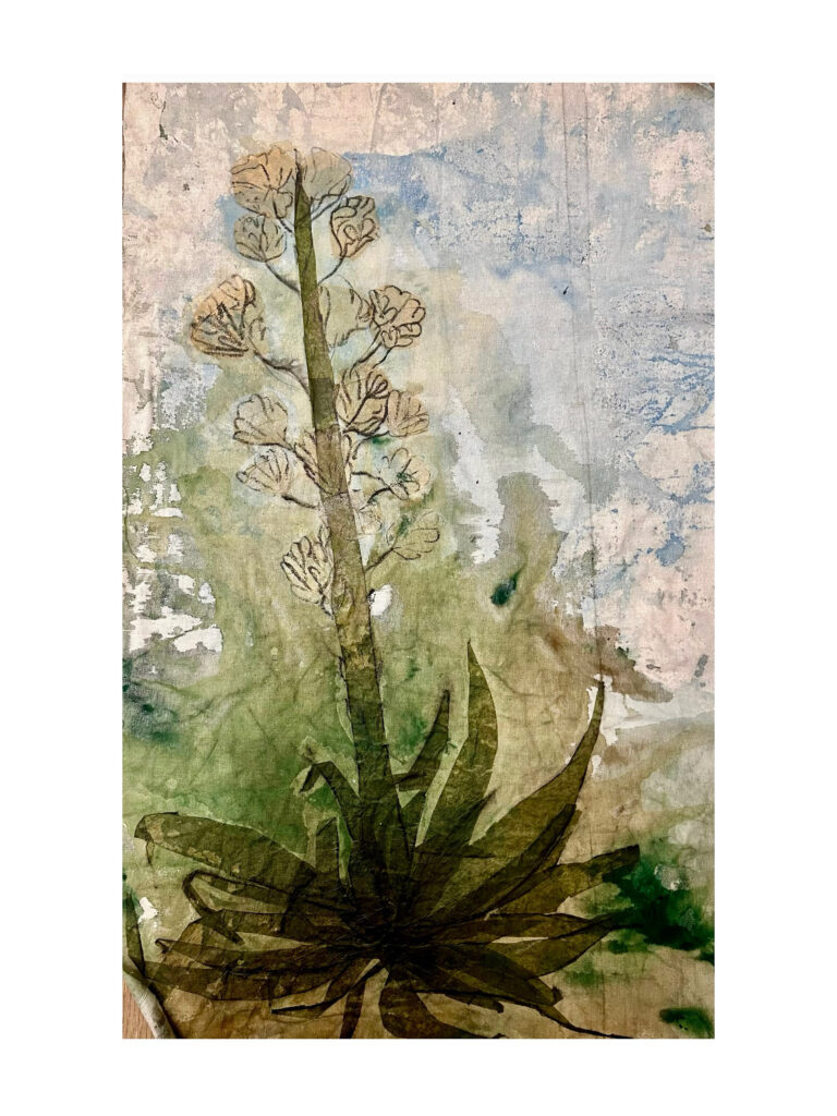 Pigmento, vernice e carta su tessuto intelato, cm 30×40, 2025