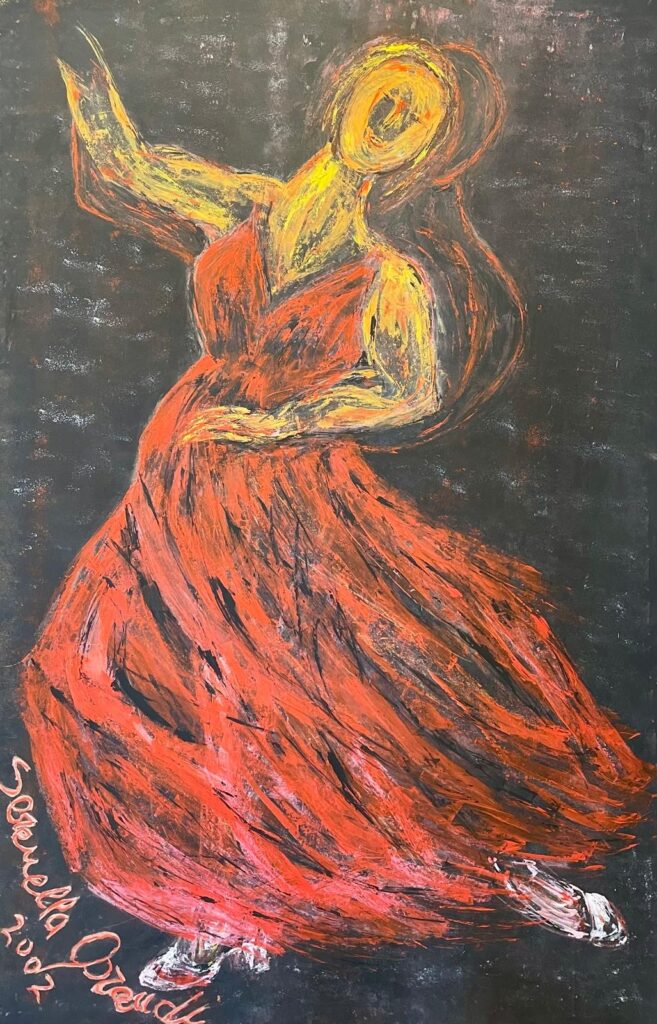 L’opera ritrae una scena di danza (tango argentino) che vede come protagonisti me stessa insieme a mio padre, l’uomo che mi ha avvicinato al mondo…
